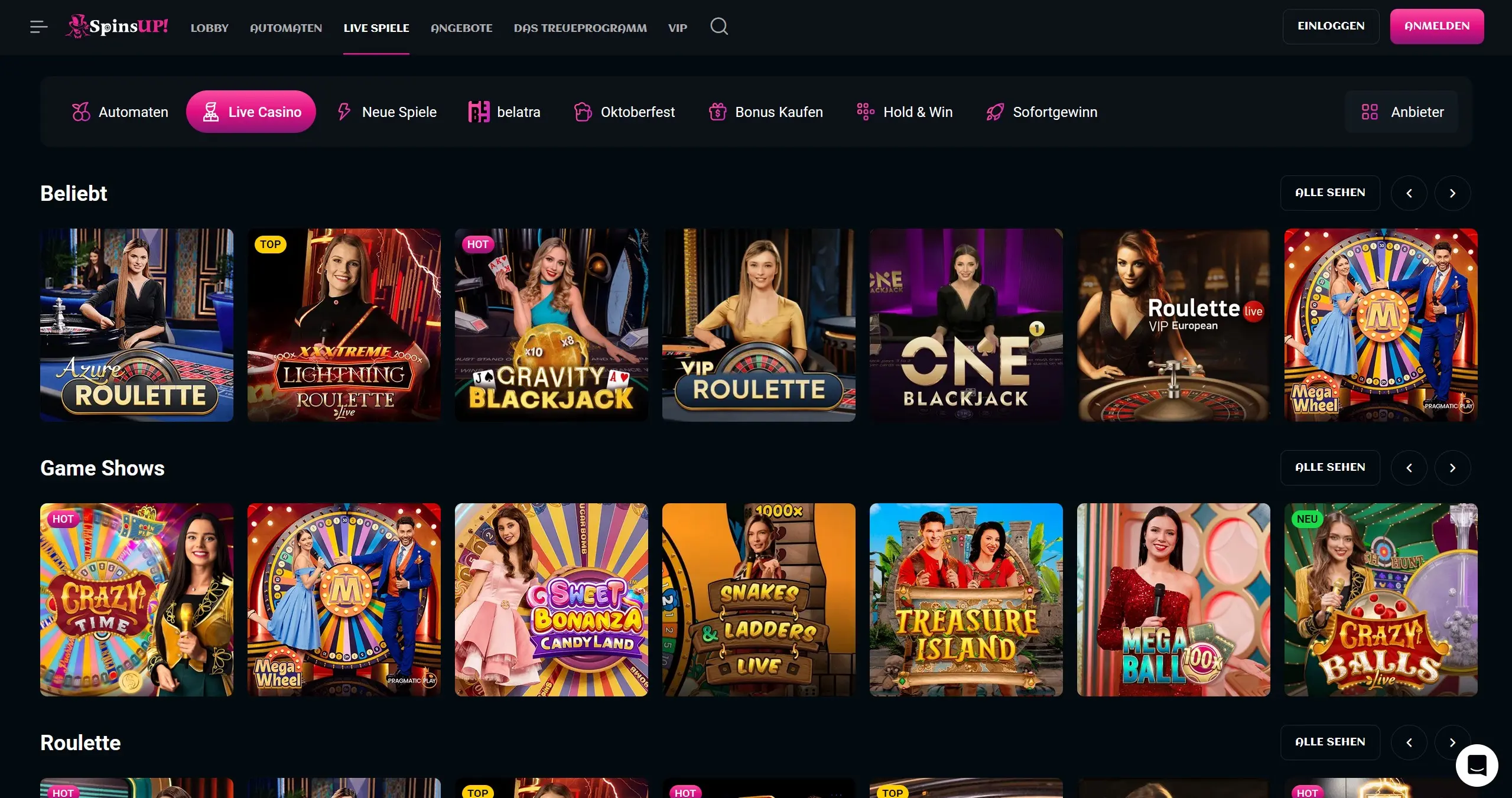 ➥ viele Live Dealer Spiele
